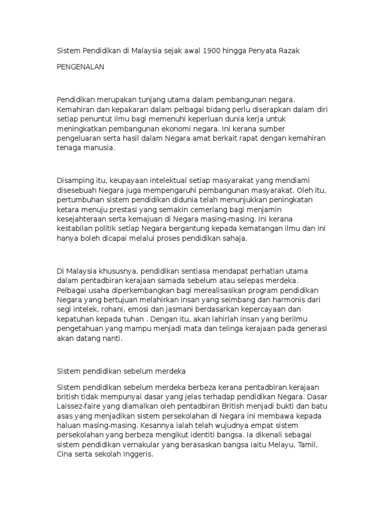 Sejarah Perkembangan Pendidikan Di Malaysia / Sistem pendidikan sebelum dan selepas merdeka.