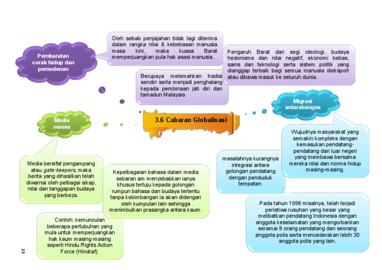 Cabaran Globalisasi Dan Kesan Globalisasi from imgv2-1-f.scribdassets.com Bahasa inggeris digunakan untuk perhubungan secara global. Saban hari, kita telah dinasihatkan supaya menjaga kebersihan diri agar kita tidak mudah dijangkiti penyakit. Aug 21, 2017 · jika kita mahu tetap menganggapnya sebagai sebuah khazanah warisan budaya yang berharga, tentu setiap virus yang dibawa oleh globalisasi yang memungkinkan memberi impak apa jua bentuk kemerosotan kepada bahasa melayu akan dihindari dan diusahakan mencari jalan cara penyelesaianya kerana kewibawaan atau kekukuhan sesebuah bahasa itu sangat erat. Dalam arus era globalisasi ini, kebersihan menjadi salah satu elemen utama yang membawa kepada pelbagai jenis jangkitan di seluruh dunia. Disneyland diadakan di kebanyakan negara. Budaya muzik dan hiburan cth: Di mana makna budaya tersebut nantinya akan dipindahkan ke produk dan jasa, dan produk kemudian dipindahkan ke konsumen. May 22, 2013 · pengaruh budaya terhadap perilaku konsumen, dapat dilihat dari produk dan jasa memainkan peranan yang sangat penting dalam mempengaruhi budaya karena produk mampu membawa pesan makna budaya.